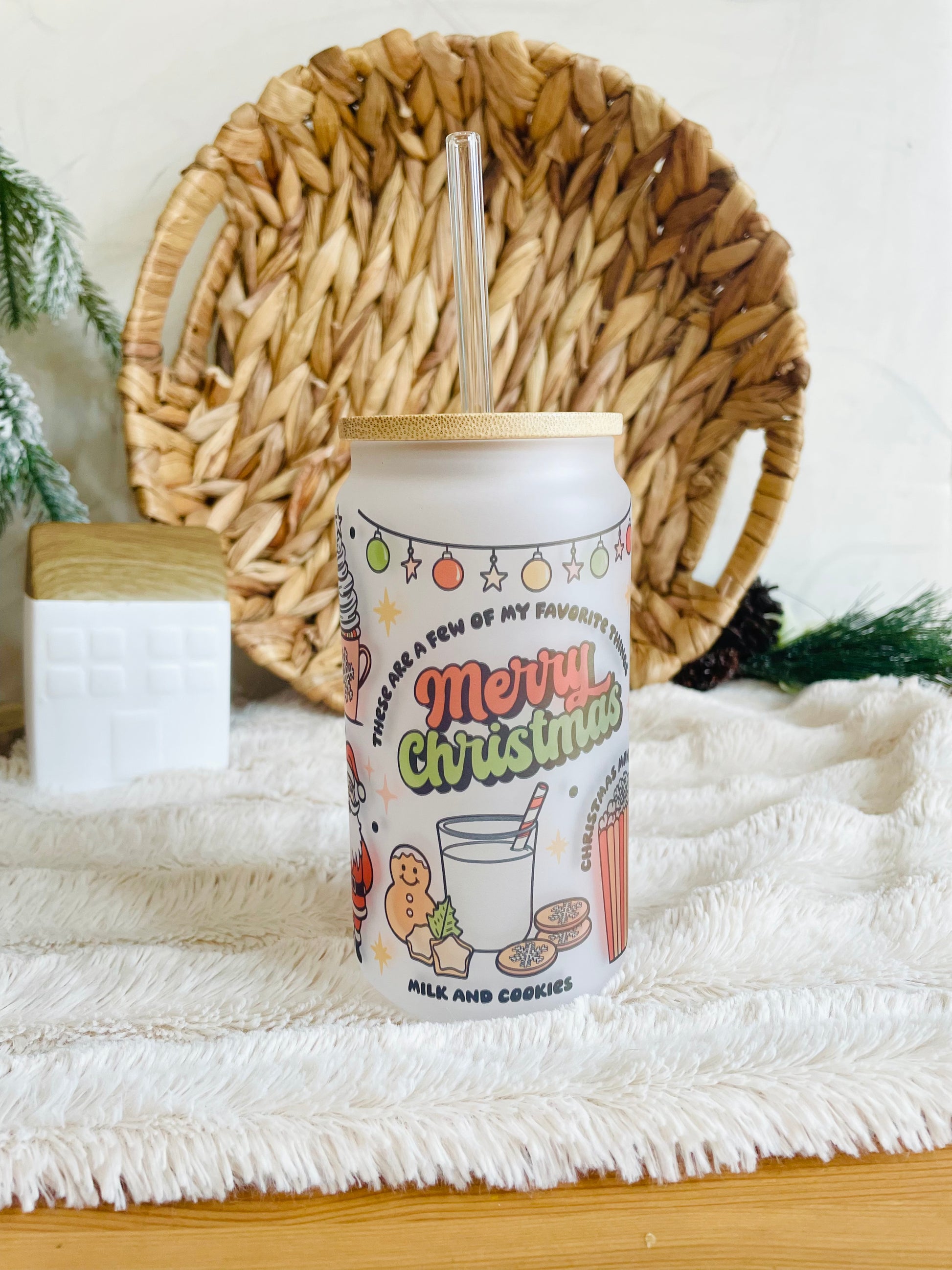 Discover the joy of the holiday season with this frosted glass cup!